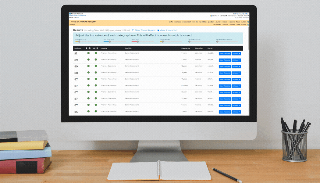 SmartAI is powered by leading artificial intelligence software, Sovren. Sovren has powered SmartSearch’s resume parsing, semantic keyword search, and now supports the artificial intelligence matching, known as SmartAI. SmartAI parses/extracts/classifies/characterizes and constructs profiles of candidates and jobs. It uses a combination of bidirectional matching and reverse compatibility matching: jobs to jobs, jobs to candidates, candidates to jobs, candidates to candidates. The intelligence in the engine adds analytical messages that provide detailed, actionable information about what matched, on what categories, and how the scores were ranked. No other system in the world is as accurate, as customizable, or as informative.